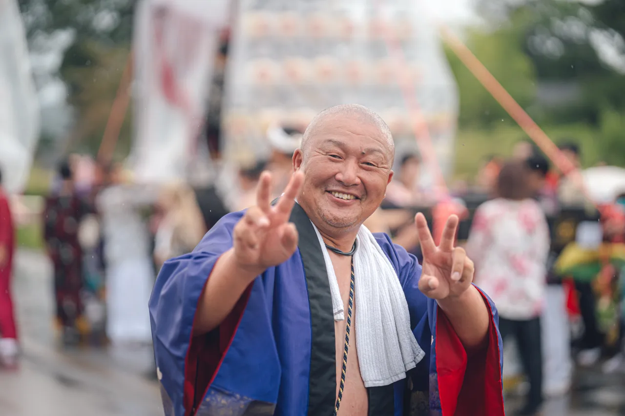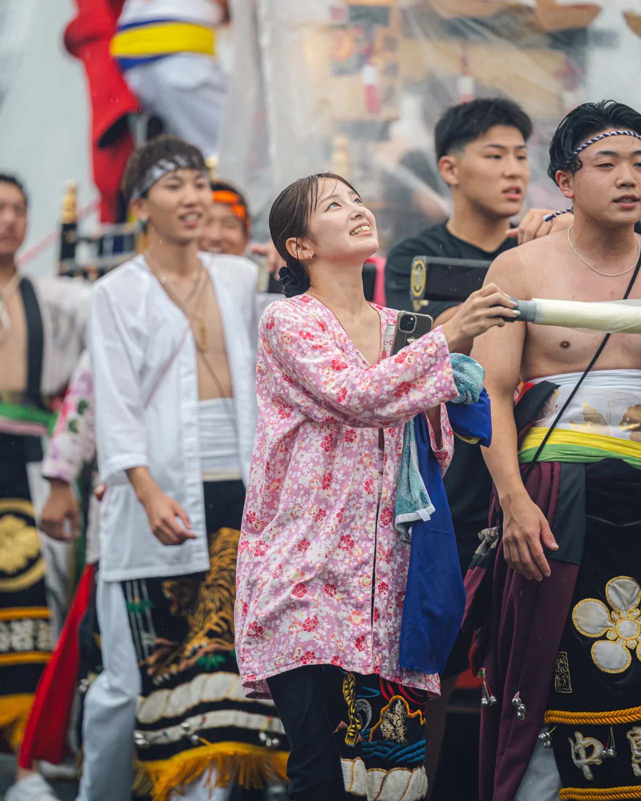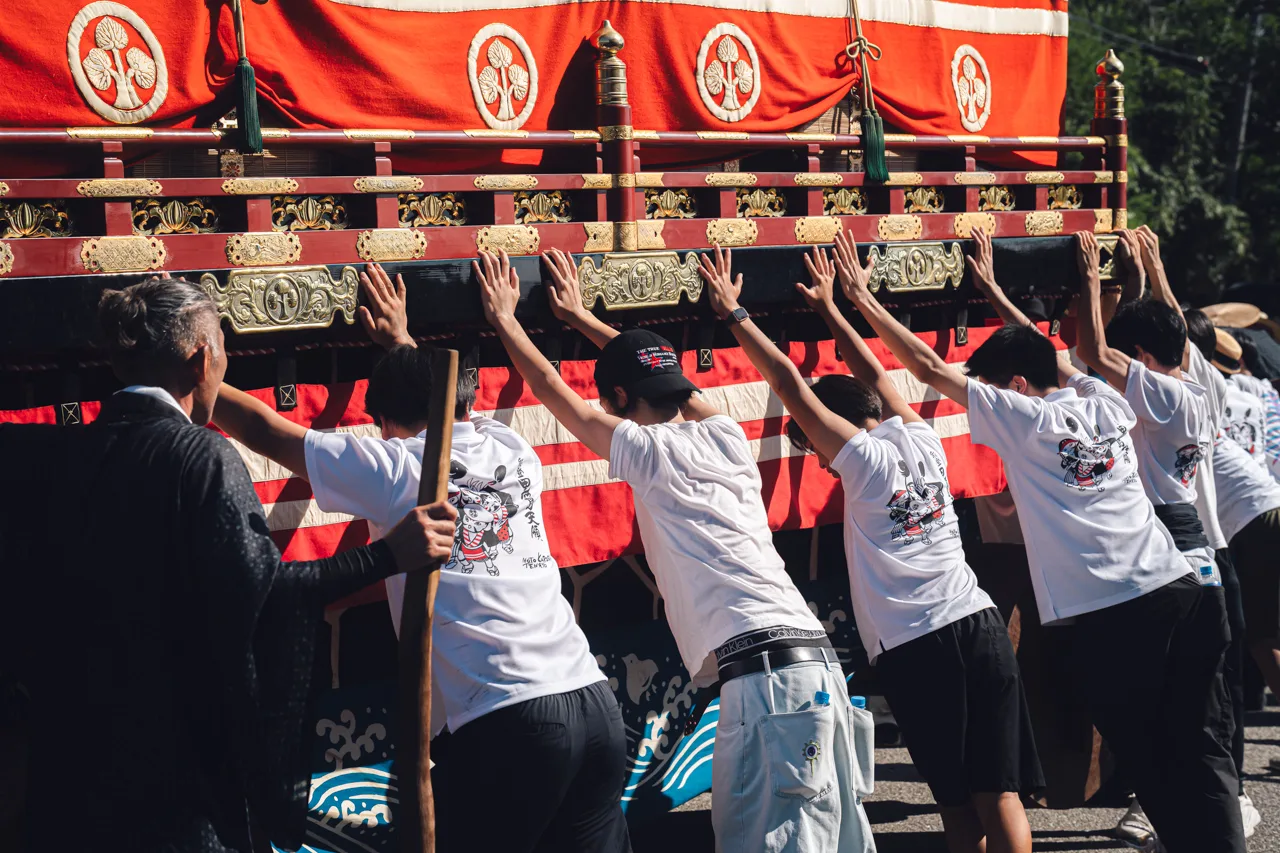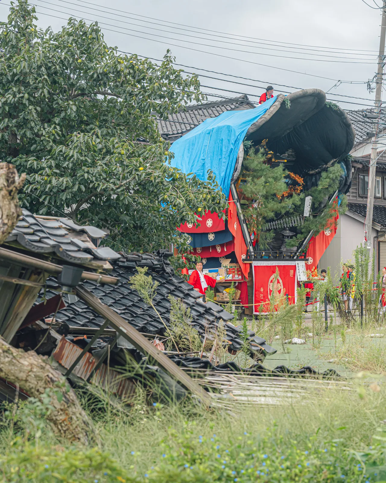 黒瓦の家々が連なる重伝建の町並みで行われる、伝統的な曳山祭。地震で倒壊した家も多い中、声を張り上げる人たちの姿が胸を打つ。学生ボランティアも加わり、地域が一体となる空気が町全体を明るくしているように感じた。地震から前へ進もうとする力が祭りの随所にあふれていて、僕自身がとても勇気づけられた。