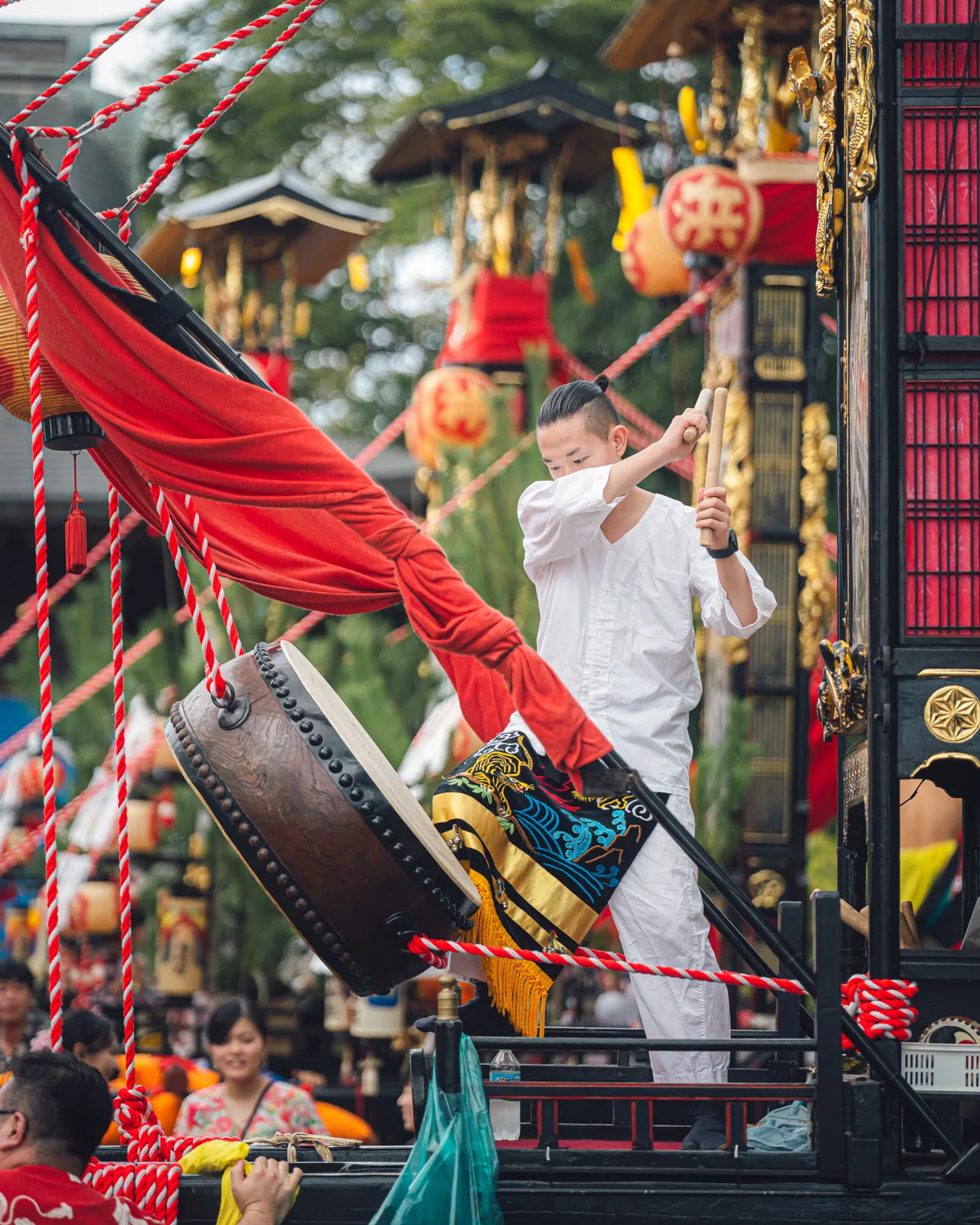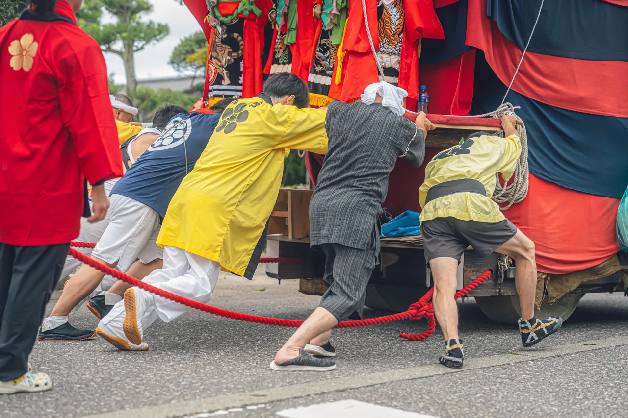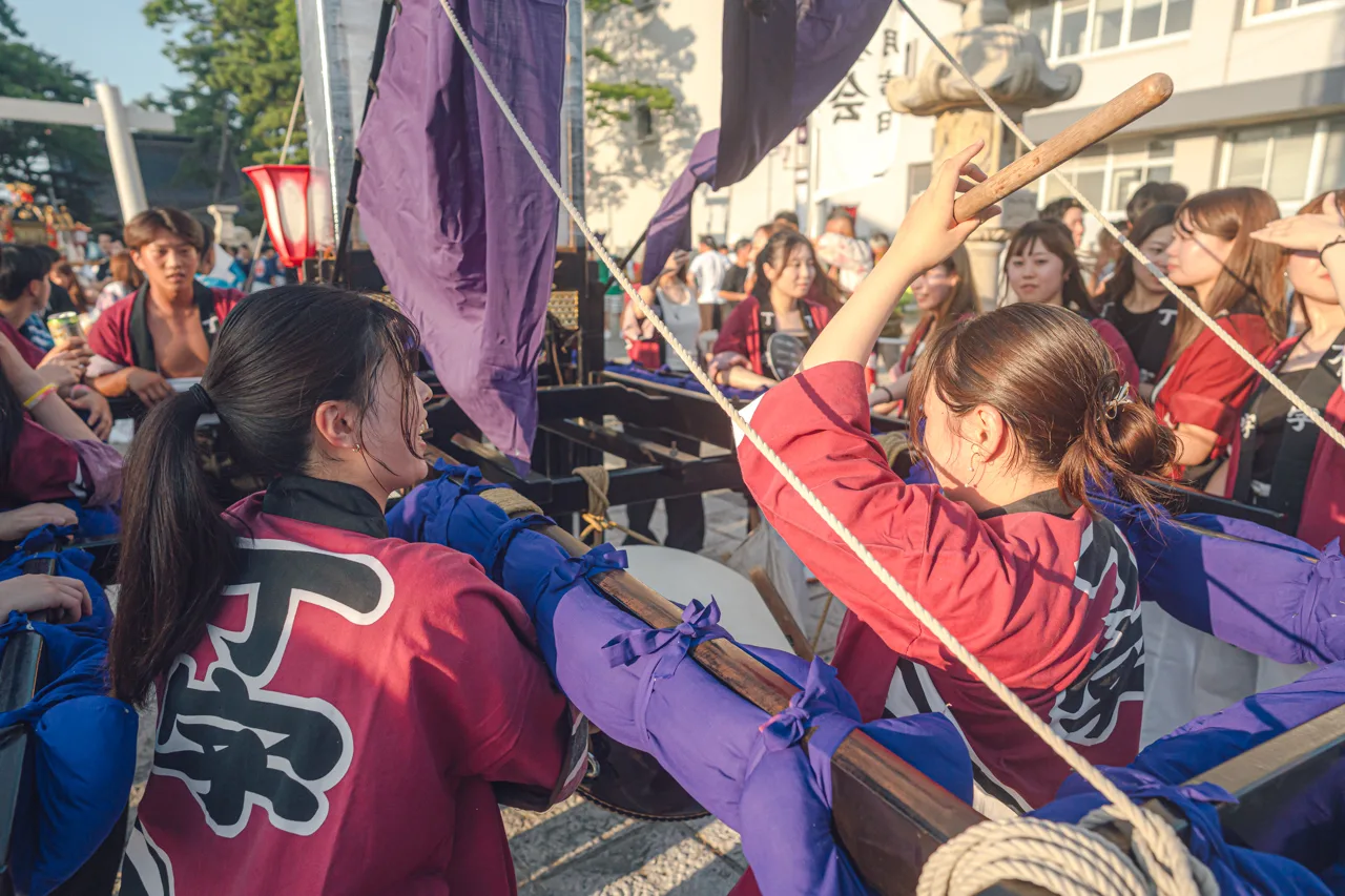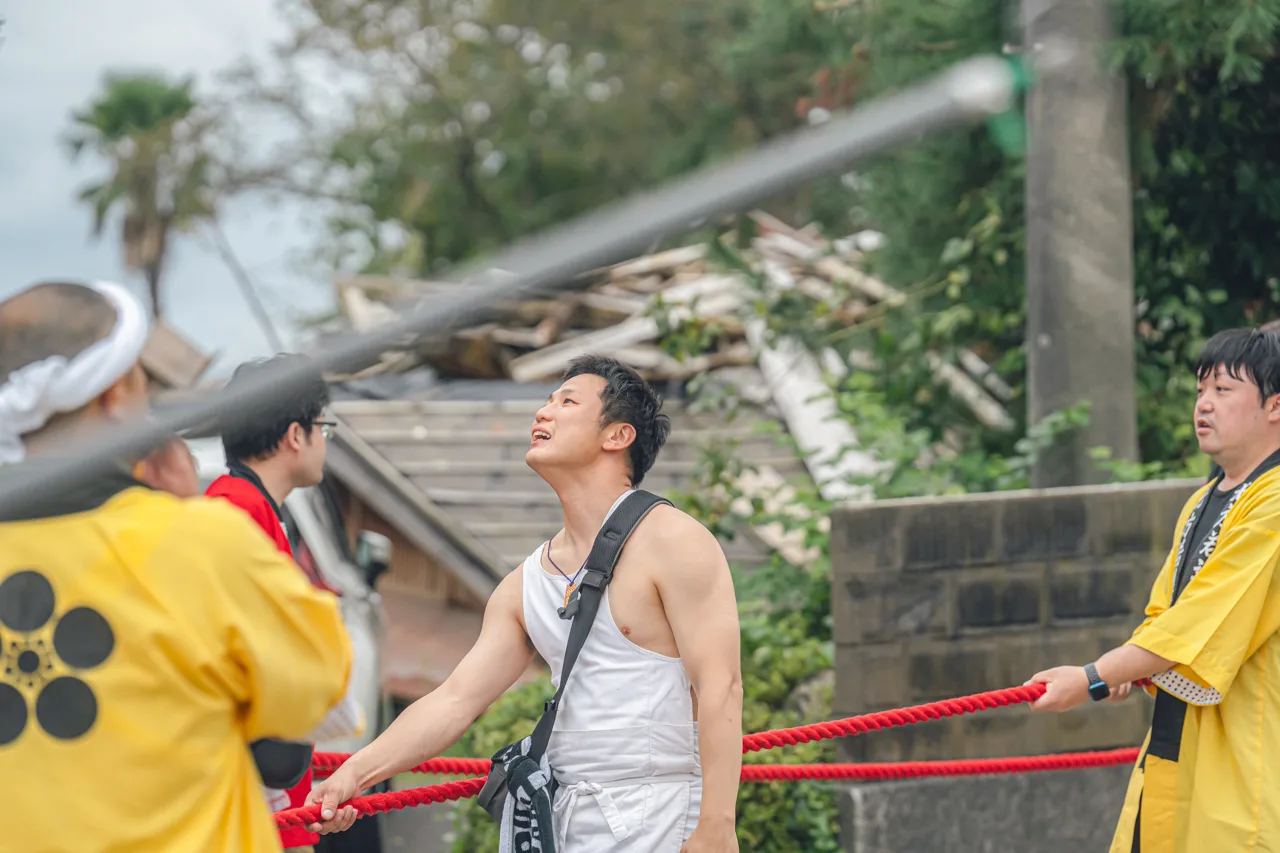 黒瓦の家々が連なる重伝建の町並みで行われる、伝統的な曳山祭。地震で倒壊した家も多い中、声を張り上げる人たちの姿が胸を打つ。学生ボランティアも加わり、地域が一体となる空気が町全体を明るくしているように感じた。地震から前へ進もうとする力が祭りの随所にあふれていて、僕自身がとても勇気づけられた。