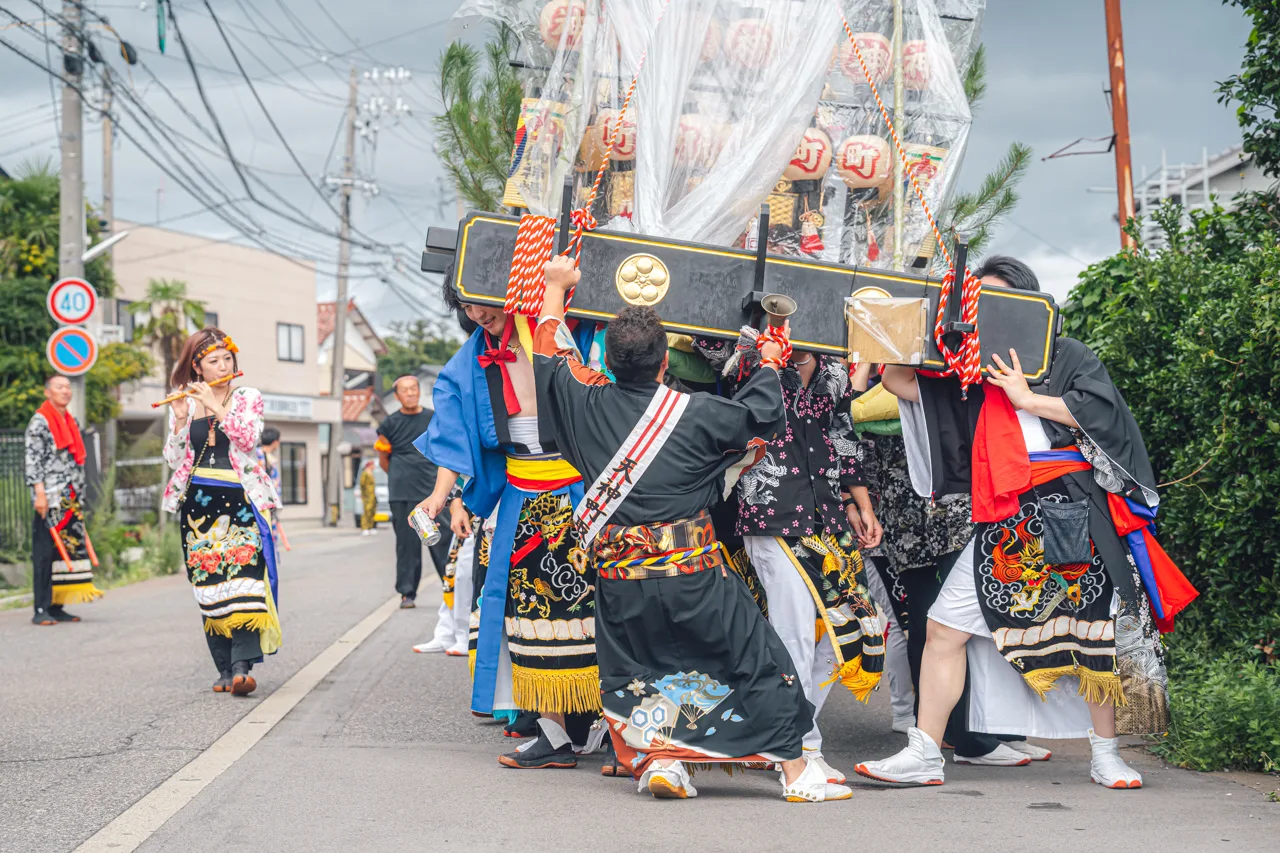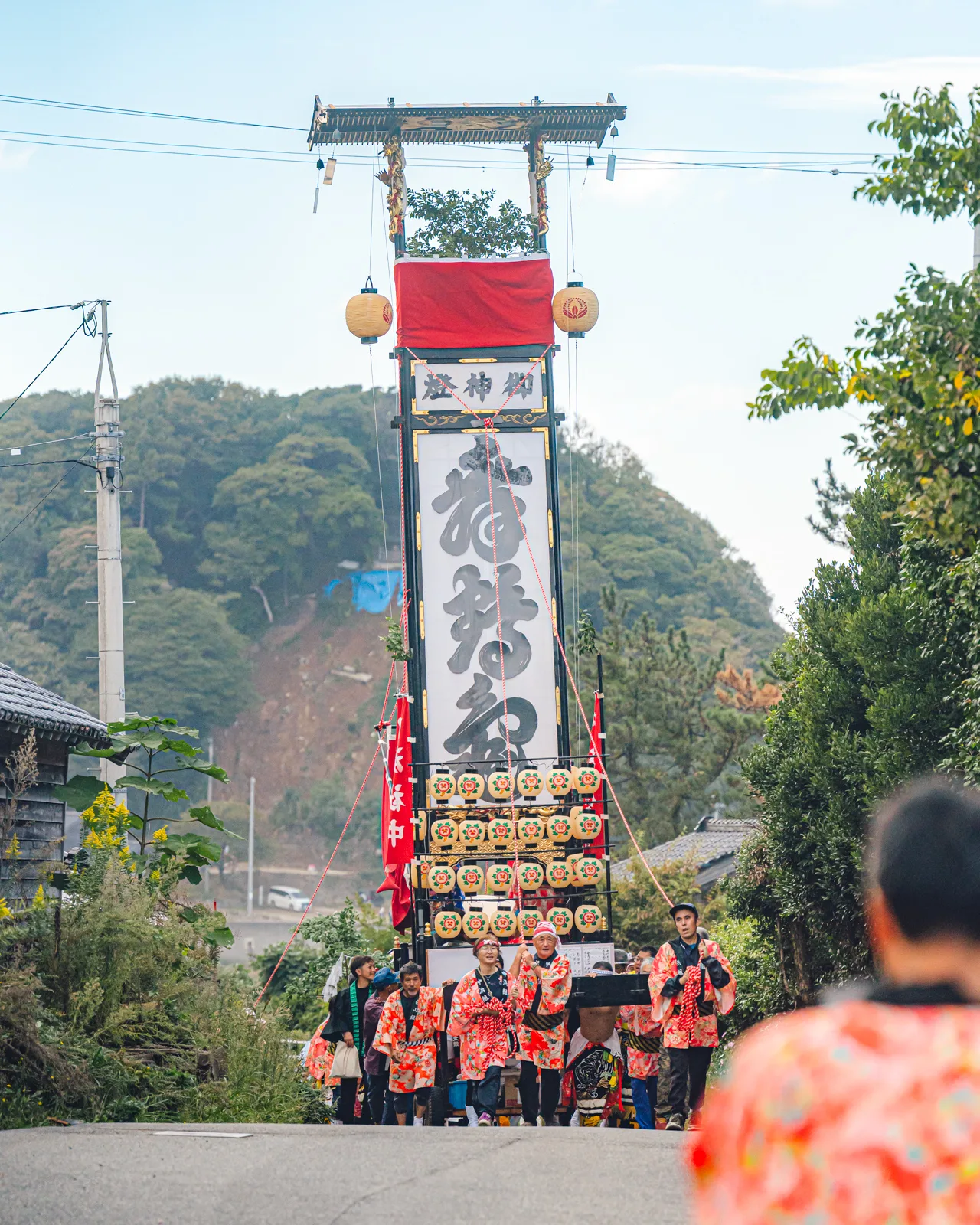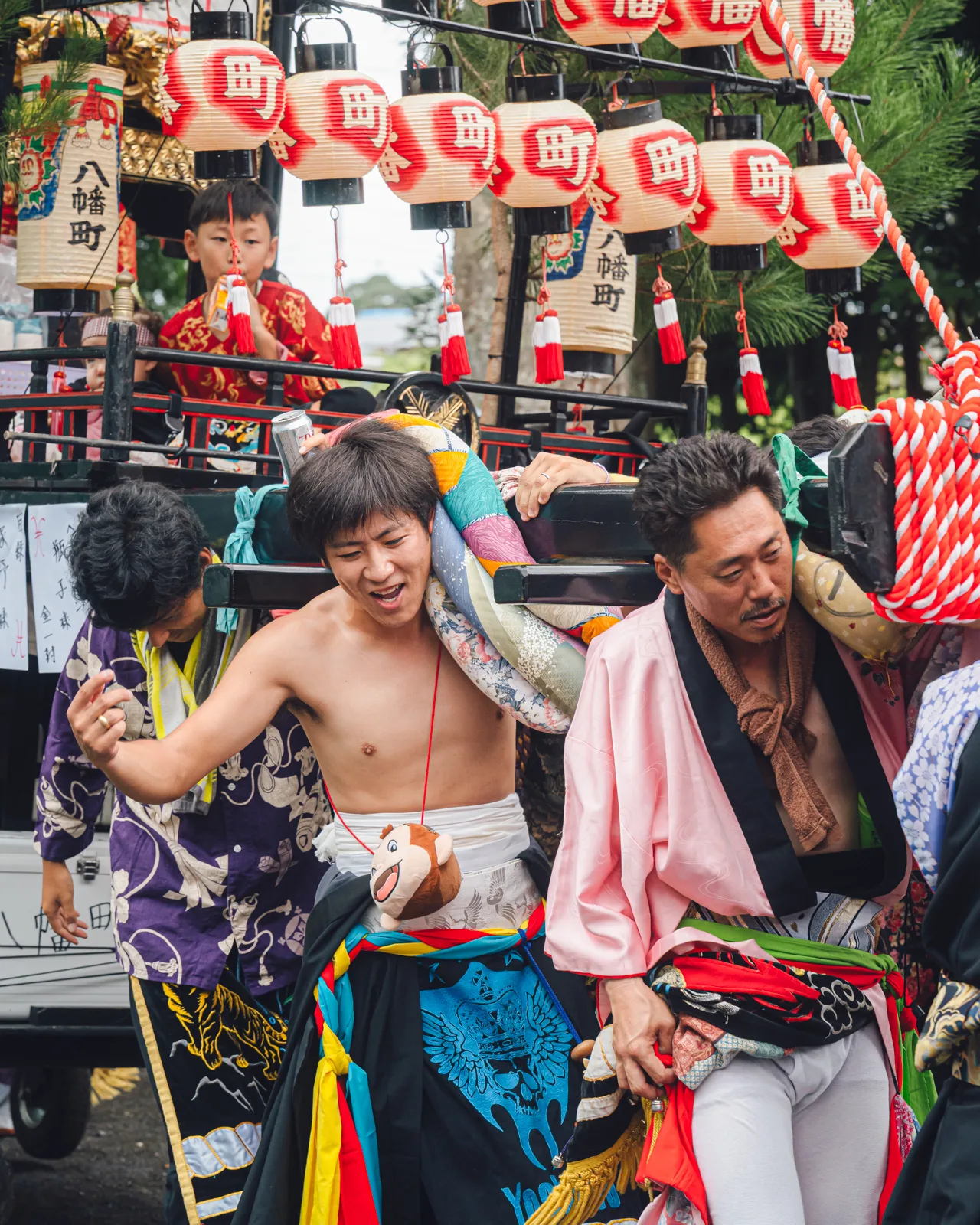 今年は曳山1台が上戸の町内を練り回り、化粧をした子どもたちの木遣り歌も披露された。途中、東京から来ていたチンドン屋さんが急遽加わり、祭りをさらに盛り上げてくれた。地元の方たちの表情には笑顔が多く、地域に受け継がれてきた祭りの温かさを改めて感じる時間だった。