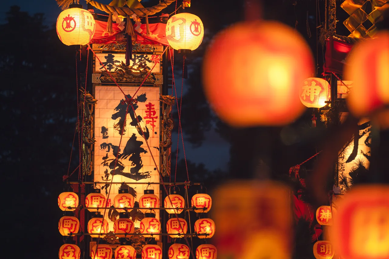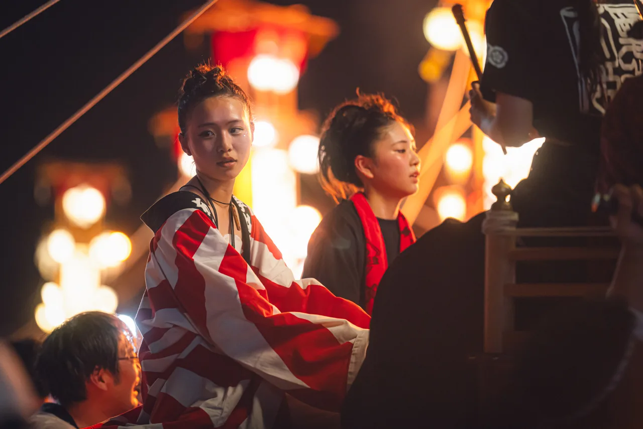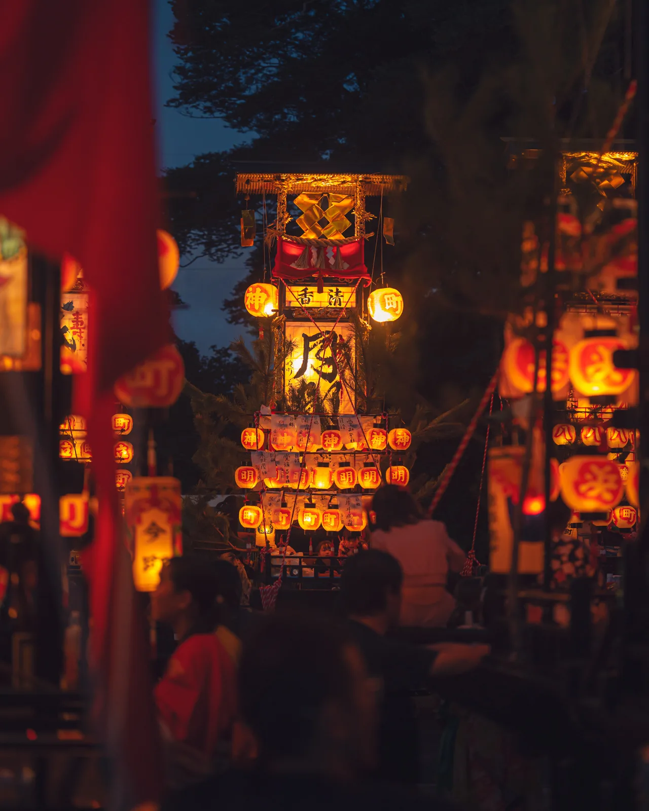 高さ16mの燈籠山と総漆塗りの山車が町内を運行する燈籠山祭り。燈籠山の迫力はもちろん、個人的にはこの祭り独特の木遣り歌(キャーラゲ)や掛け声がたまらなく好きで、毎年楽しみにしている祭りの一つ。特に笛の音色は美しく、どこか懐かしさを感じるのは、その響きがヒグラシの鳴き声と似た心地よさを持っているからかもしれない。幼い頃、能登の祖父母の家へお盆に帰省したときに聞いていた、あの夕暮れの音がふと重なる瞬間がある。地域の皆さんが心から祭りを楽しんでいるのが伝わってきて、今年もその輪の中にいられたことが本当に嬉しかった。