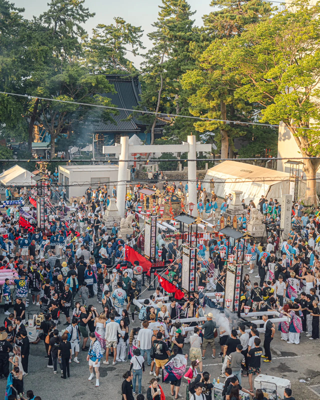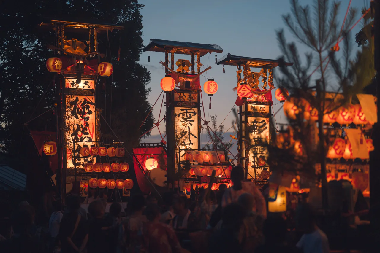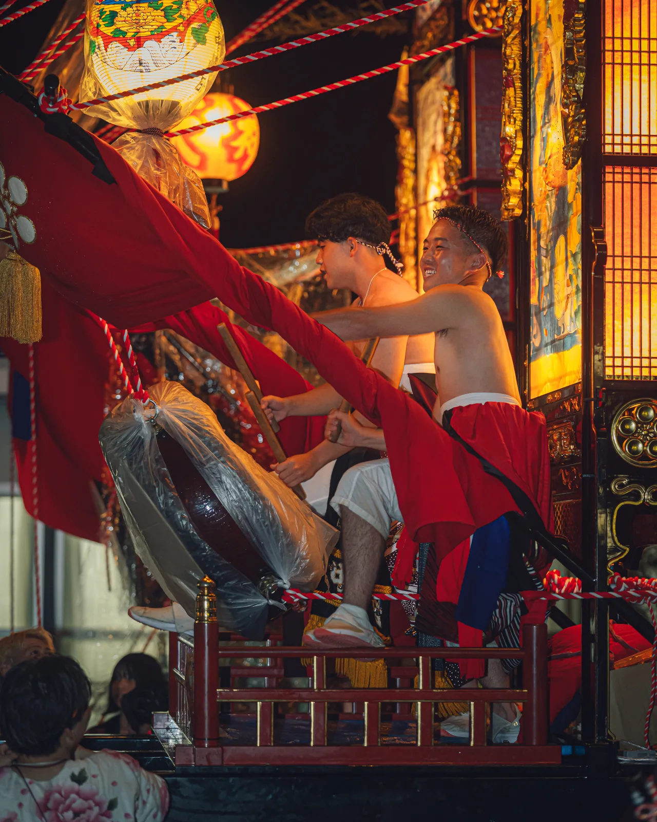高さ16mの燈籠山と総漆塗りの山車が町内を運行する燈籠山祭り。燈籠山の迫力はもちろん、個人的にはこの祭り独特の木遣り歌(キャーラゲ)や掛け声がたまらなく好きで、毎年楽しみにしている祭りの一つ。特に笛の音色は美しく、どこか懐かしさを感じるのは、その響きがヒグラシの鳴き声と似た心地よさを持っているからかもしれない。幼い頃、能登の祖父母の家へお盆に帰省したときに聞いていた、あの夕暮れの音がふと重なる瞬間がある。地域の皆さんが心から祭りを楽しんでいるのが伝わってきて、今年もその輪の中にいられたことが本当に嬉しかった。